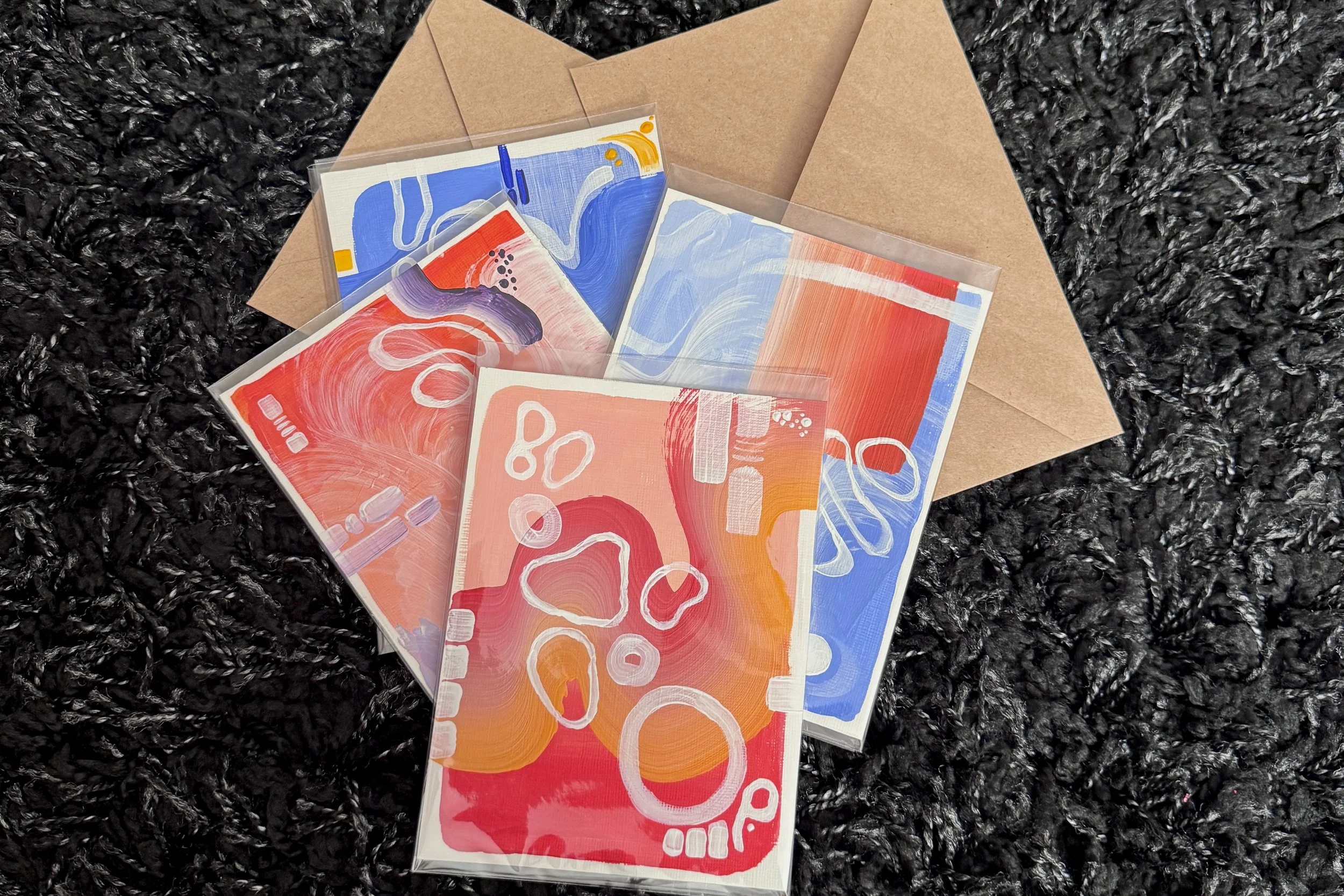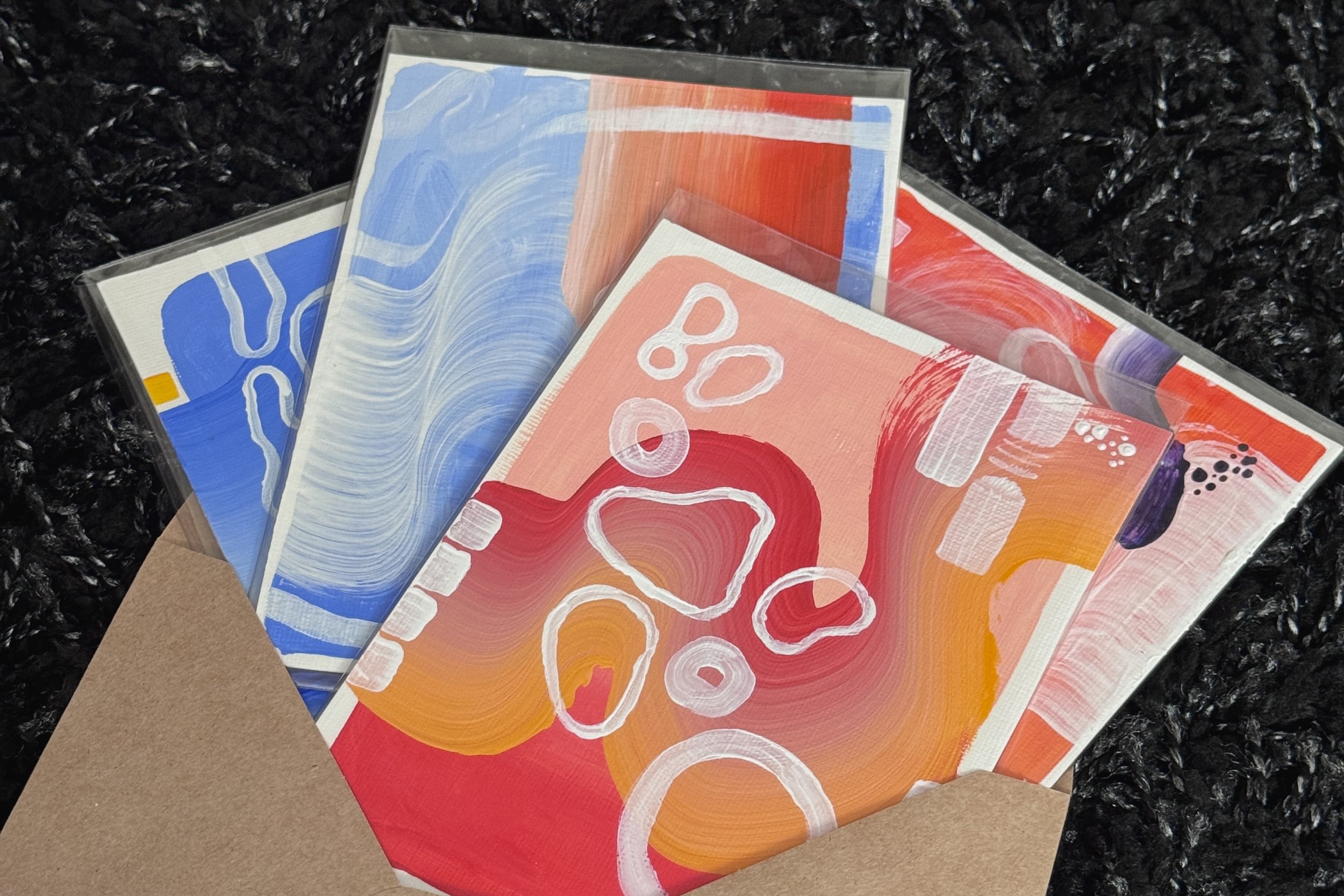 each painting will come in a clear protective sleeve inside an envelope. along with a sticker